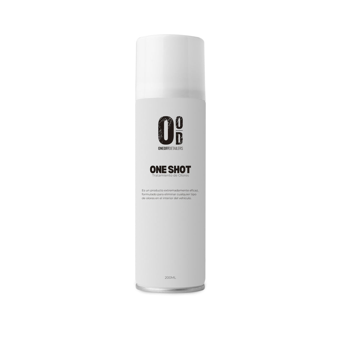El Tratamiento Eliminador de Olores (ONE SHOT) de ONE OFF Detailers elimina los olores más comunes de los vehículos, como la humedad, el tabaco y las mascotas, entre un 95% y 100%, dejando en tu coche fragancias elegantes y sofisticadas. Este producto no daña ni mancha los tejidos.